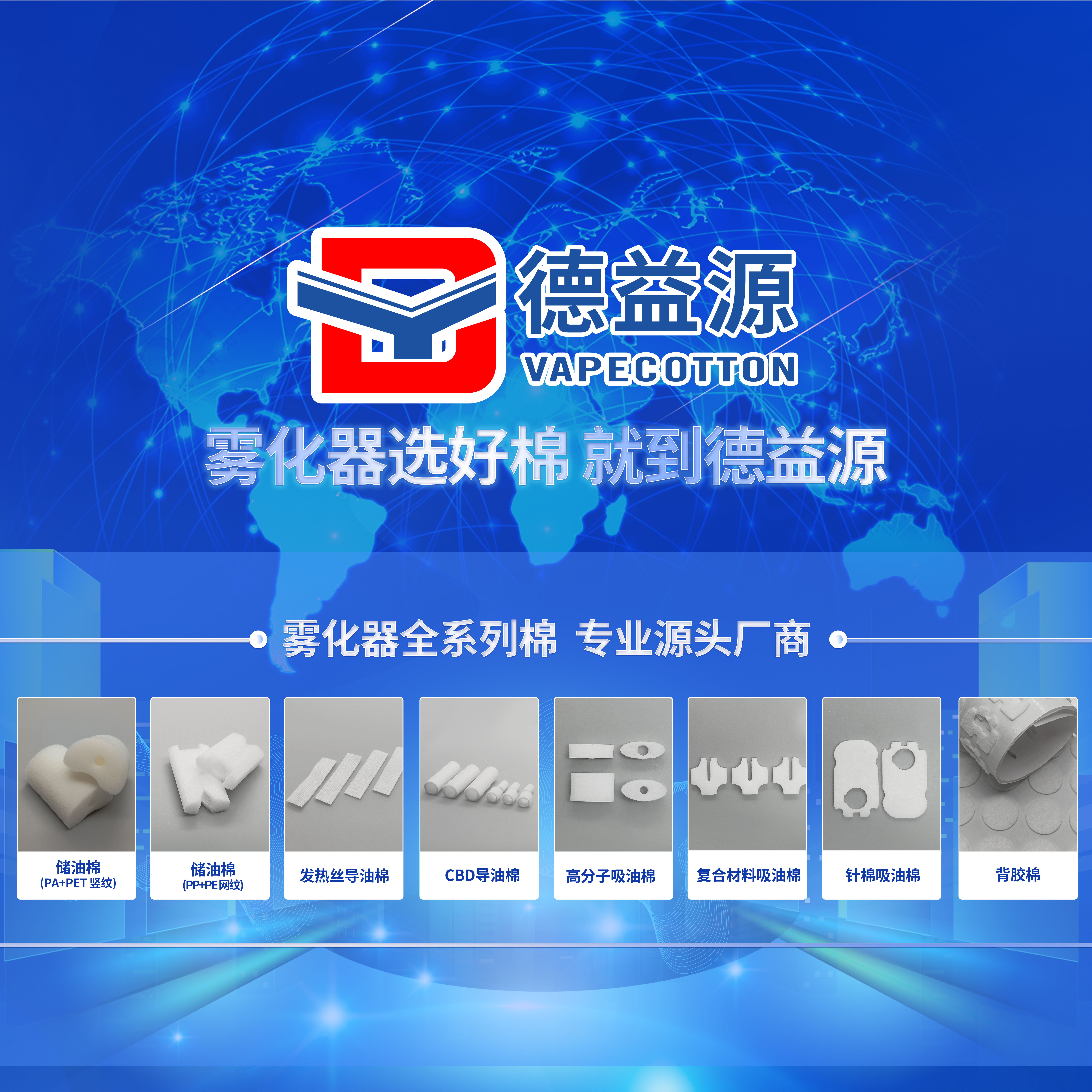 9月07-09日, 德益源將攜帶自研霧化器全系列 棉產(chǎn)品(儲油棉、發(fā)熱絲導(dǎo)油棉、吸油棉、背膠棉、濾嘴棉、CBD導(dǎo)...
